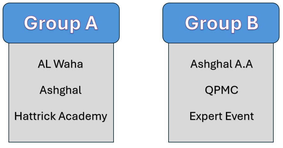 | Ashghal | 3 : 0 | Al Waha | 9:30 | 25/02/2026 | Wednesday | A 1 |