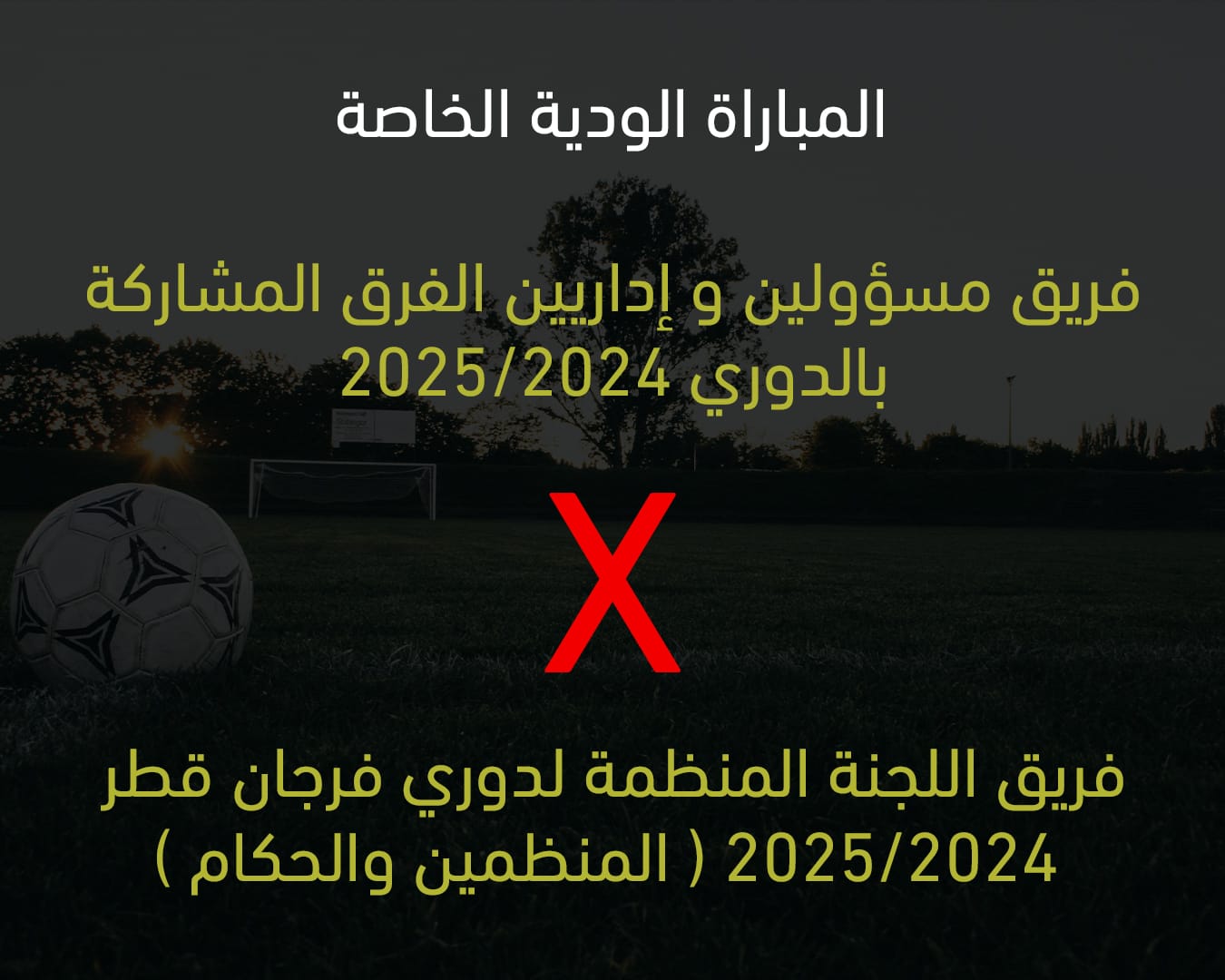 لقاء الودي الثاني بدوري فرجان قطر 2025/2024 بعد نجاح مباراة الأفتتاح بين فريق نجوم أنديتنا السابقين و منتخب دوري فرجان قطر 2025/2024 ، سوف تنظم اللجنة المنظمة لدوري فرجان قطر المباراة الودية الخاصة بين إداريين و رؤساء الفرق المشاركة أمام فريق اللجنة المنظمة للدوري يوم الأربعاء القادم إن شاءالله في تمام الساعة 9:00 بعد ختام …