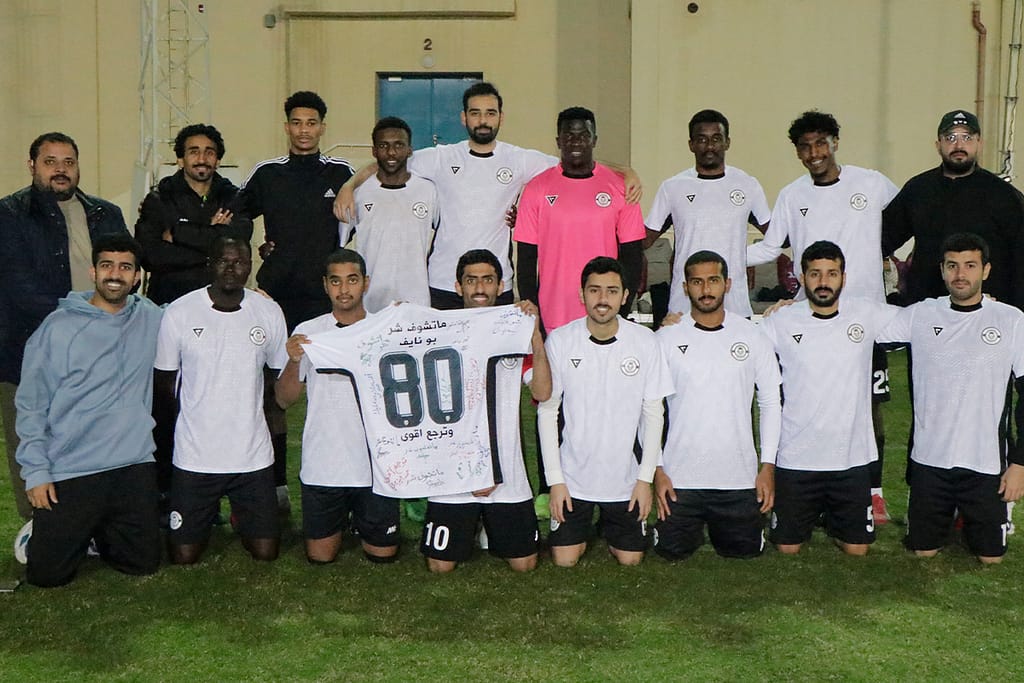في مشهد يجسد المعنى الحقيقي للروح الرياضية، قدم لاعبو فريق الصخامة بادرة إنسانية رائعة تعكس تماسك الفريق ، وذلك بتوقيعهم على القميص الرسمي للفريق وإهدائه إلى زميلهم اللاعب الشيح / أحمد بن نايف آل ثاني ، الذي تعرض لإصابة قوية أبعدته عن الملاعب لموسم كامل، وجاءت هذه المبادرة تعبيرًا صادقًا عن الوقوف إلى جانب اللاعب في محنته، وتأكيدًا على أن العلاقة بين اللاعبين لا تتوقف عند حدود المستطيل الأخضر، بل تمتد إلى الدعم المعنوي والإنساني في أصعب الظروف ، وقد تم توثيق هذه اللحظة الجميلة بالتصوير، حيث حرص اللاعبون على إرسال صورة القميص إلى زميلهم المصاب، في رسالة واضحة مفادها: